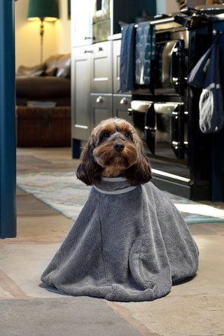 Handmade from advanced microfibre, our drying bags can absorb seven times their weight in water and air dry four times faster than cotton. Every inch is meticulously brushed to perfection making it super snuggly and incredibly soft - it’s a cosy spot for your dog to curl up in while drying off.